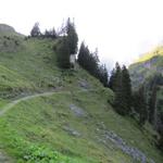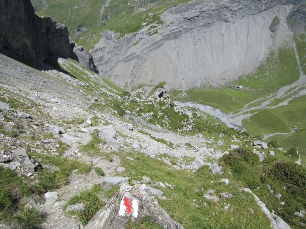 an der linken Talseite führt der Bergpfad aufwärts zur Gspaltenhornhütte