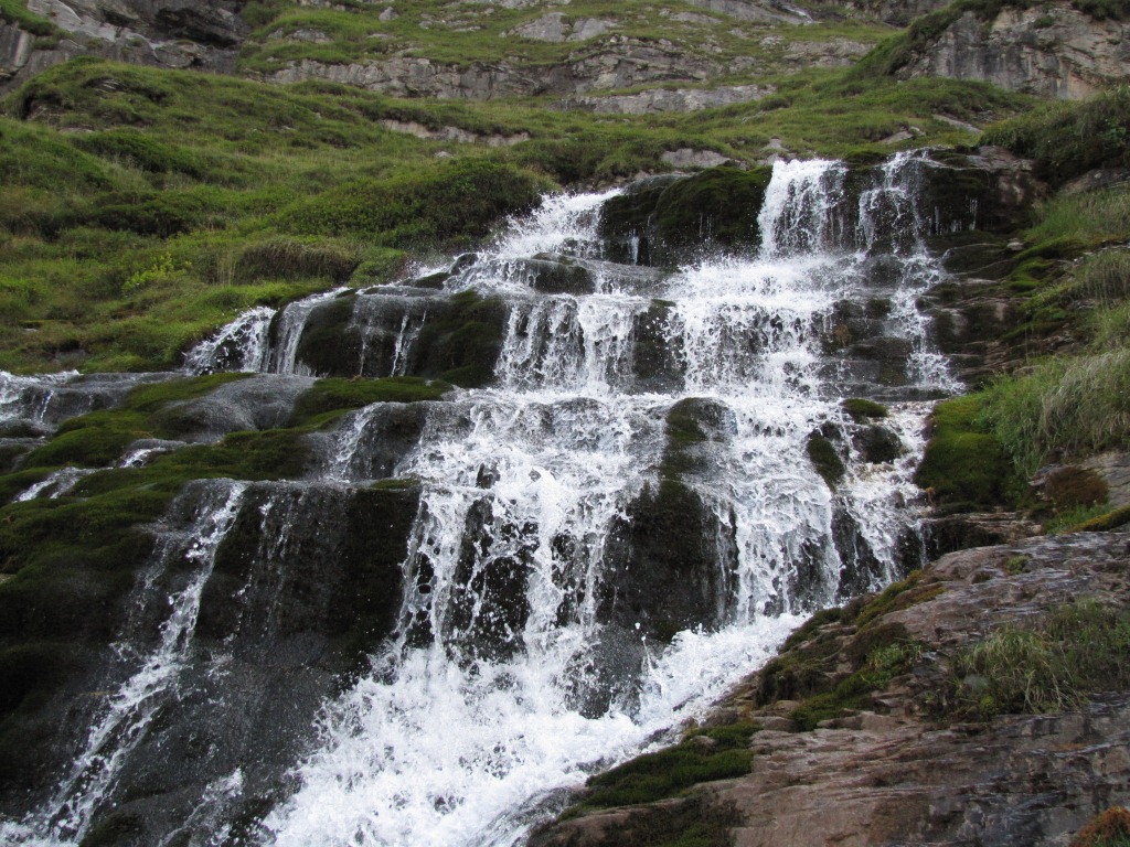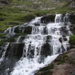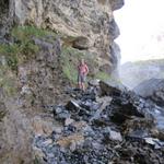 hier heisst es schnell laufen. Mehrere Bäche stürzen von weit oben auf den Wanderweg