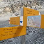 und erreichen die Kreuzung direkt unterhalb der Hütte. Hier biegen wir links ab zum Moränenweg