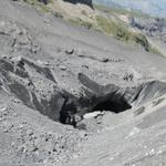 hier ist der Gletscher komplett von Geröll und Schutt bedeckt