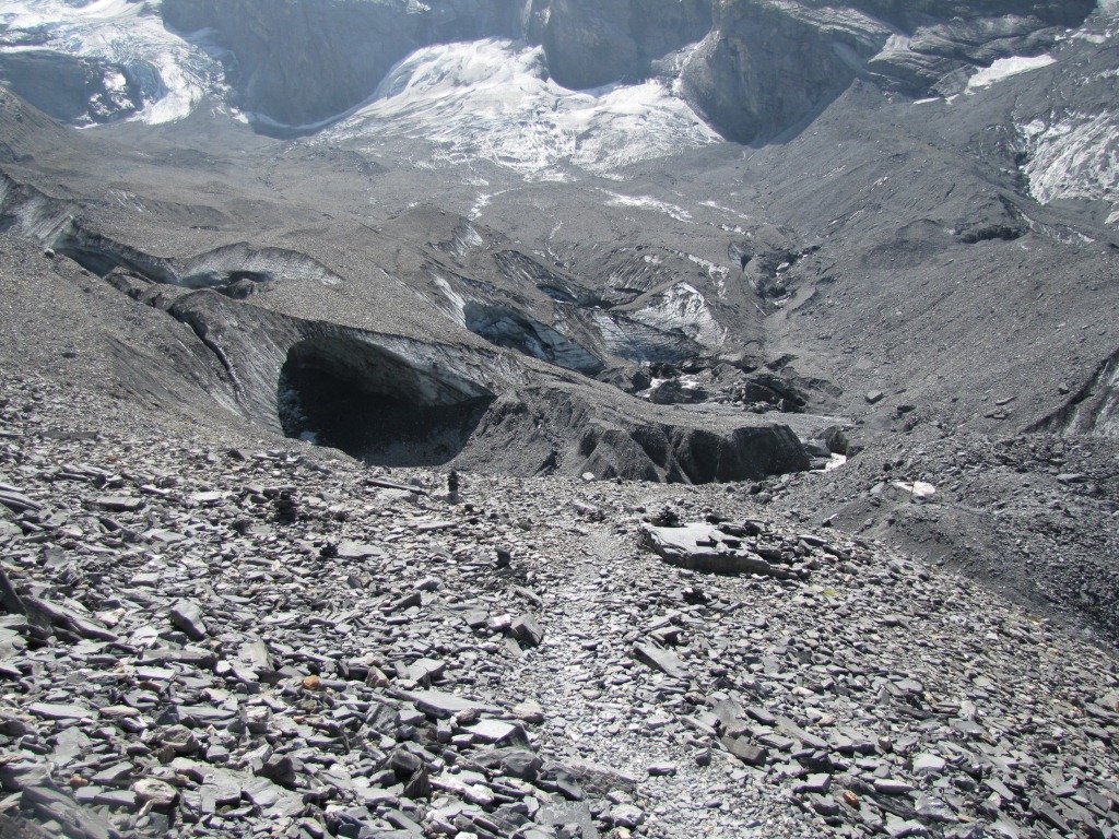 auf diesem Foto gut ersichtlich. Der Gletscher ist mit einer dicken Schuttschicht bedeckt