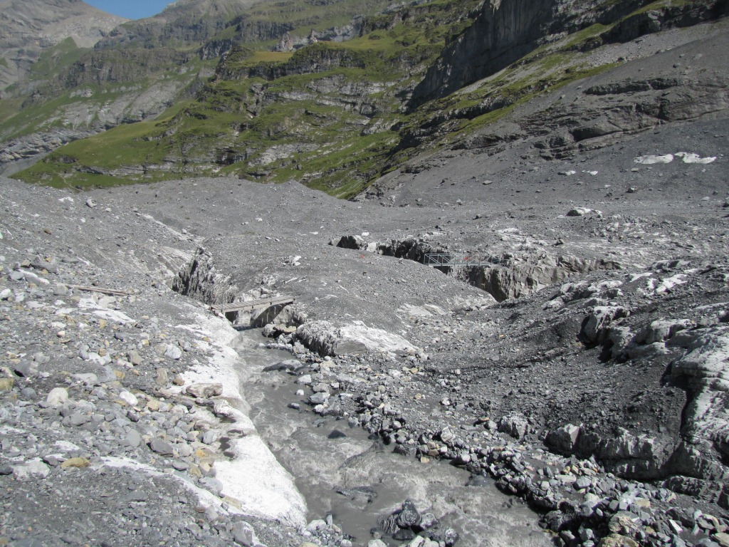 der Bach fliesst direkt in den Gamchigletscher hinein