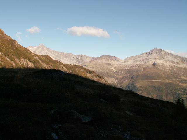 links Pizzo Rotondo, Cavanna Pass und rechts Pizzo Lucendro