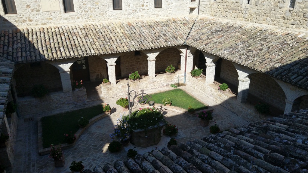 mit dem Blick auf die Dächer von Assisi und den Kirchturm der Abtei San Pietro verlassen wir die Kirche Datum 05.12.2020