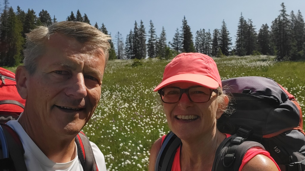 die heutige Etappe ist lang und die Rücksäcke nicht leicht. Aus diesem Grund bleiben wir auf dem einfachen Wanderweg