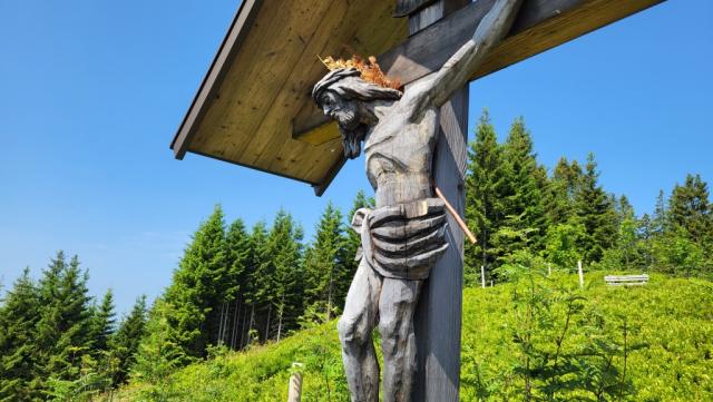beim Wegkreuz kurz vor der Karl-Hüller-Hütte halten wir uns links...
