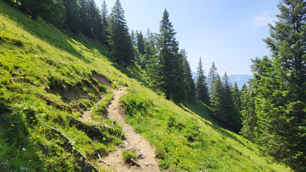der Pfad steigt nun an, und führt uns südseitig um den Spieser herum