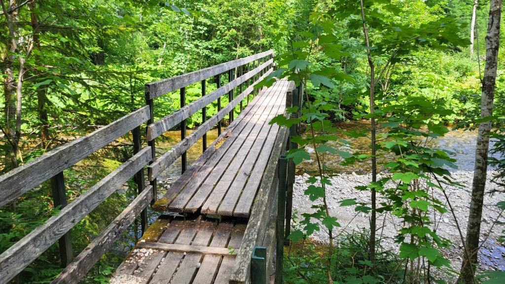 über eine Holzbrücke überqueren wir...