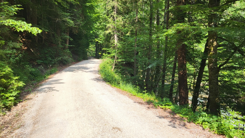 ein paar Meter weiter verengt sich die Asphaltstrasse zum Waldweg