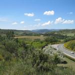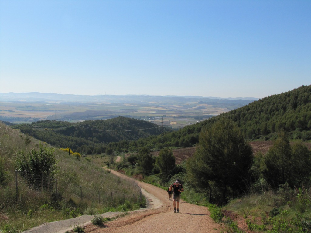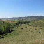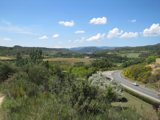 Blick zurück. Weit hinten am Horizont, schwach erkennbar die Pyrenäen