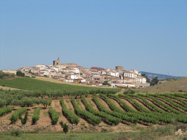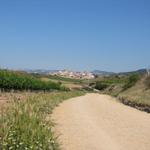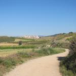 weit vorne am Horizont taucht Cirauqui auf