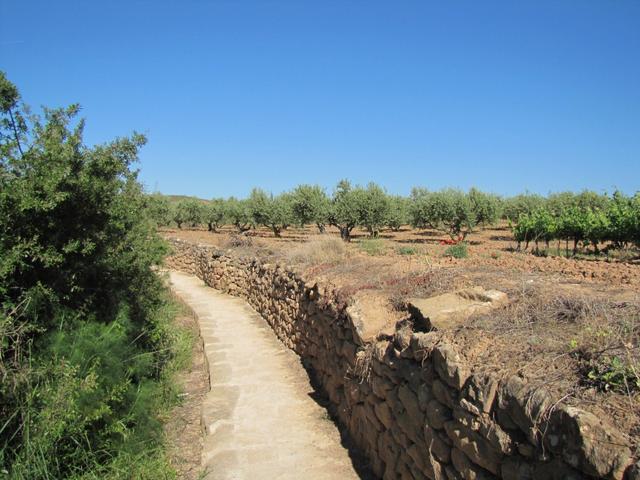 Olivenbäumen und Rebhänge säumen den Weg