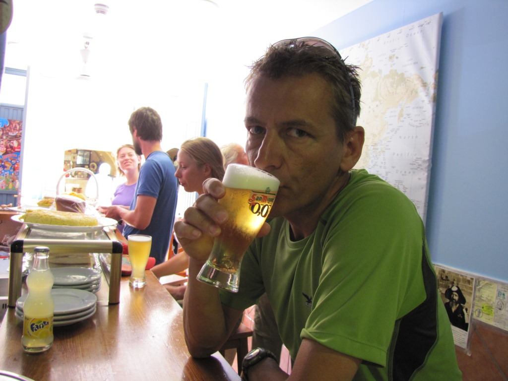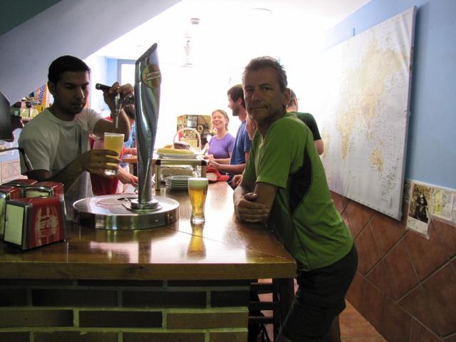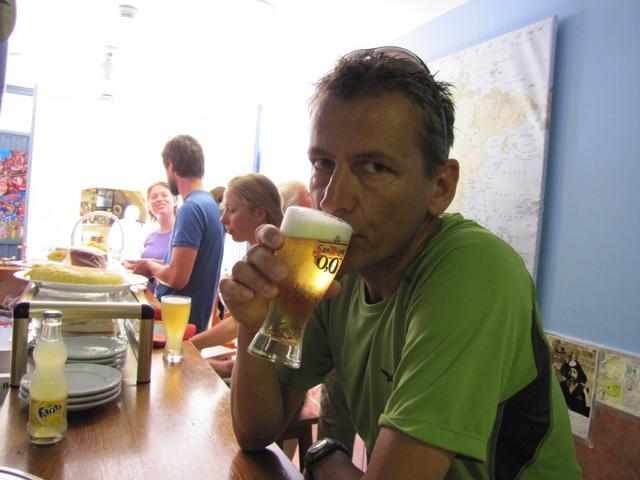 während dem warten auf das Essen, geniesst Franco ein kühles Bier