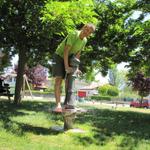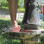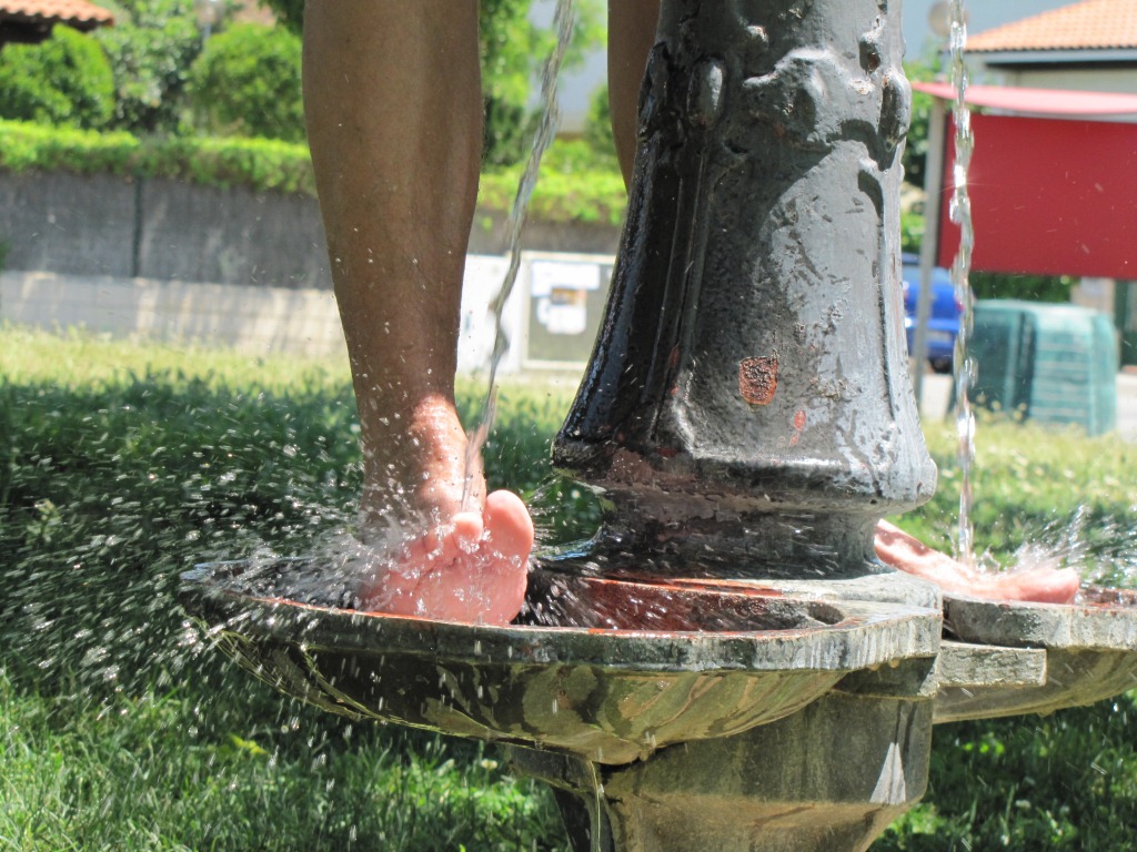Franco kühlt an einem Brunnen in Villatuerta die Füsse
