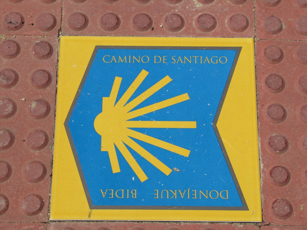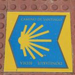 Wegweiser am Boden helfen uns den Weg nach Estella zu finden