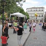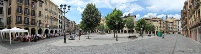 Breitbildfoto vom Festplatz es ist der 25. Mai das Spanferkel essen in Estella findet statt