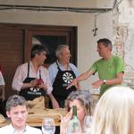 der Präsident des OK erklärt Franco wie die Spanferkel im Ofen gebraten werden