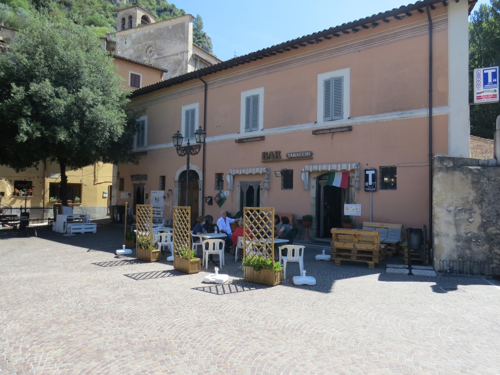 beim Dorfplatz von Precetto legen wir im Schatten eine Kaffeepause ein