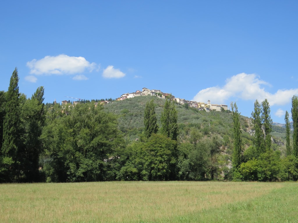 wir blicken zurück und hinauf zum Dorf Ceselli, wo wir am Vortag aufgehört hatten