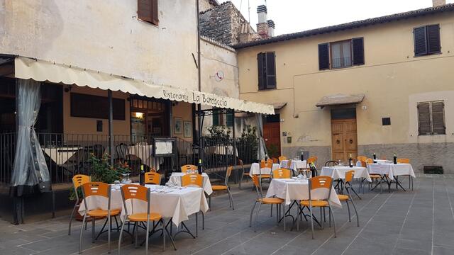 im Restaurant La Barcaccia oder besser gesagt draussen auf dem Platz, haben wir das sehr gute Abendessen eingenommen