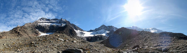 schönes Breitbildfoto mit Blick auf Triftgletscher, Weissmies und die anderen Viertausender. Der höchste ist der Dom Datum 13.02.2017