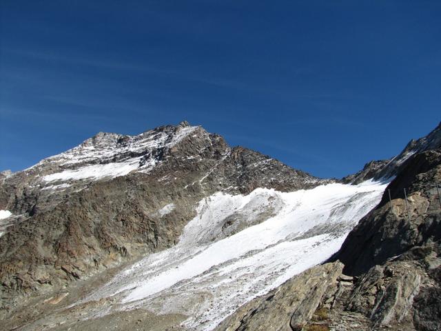 plötzlich taucht er vor uns auf, der Weissmies mit Triftgletscher Datum 23.01.2014