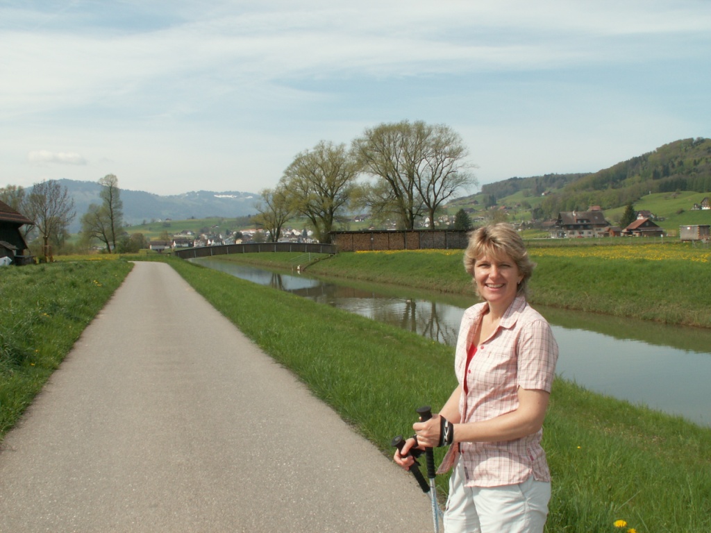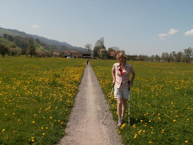 im Schatten der Laubbäume geht es Richtung Lachen runter