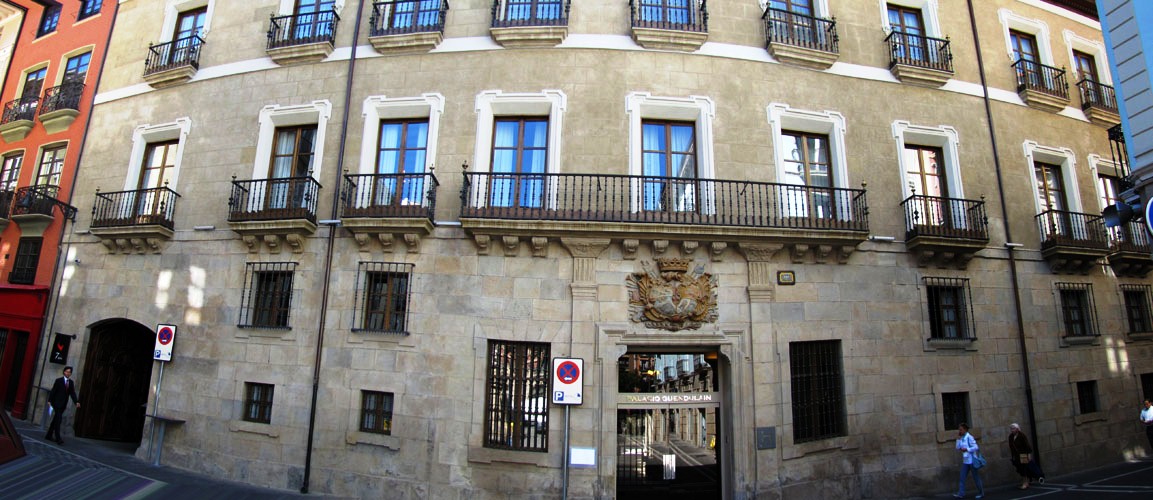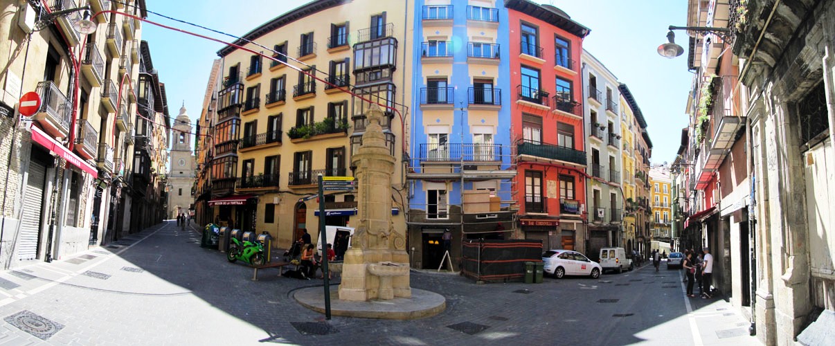 Breitbildfoto einer prunkvollen Fassaden in der Altsadt von Pamplona