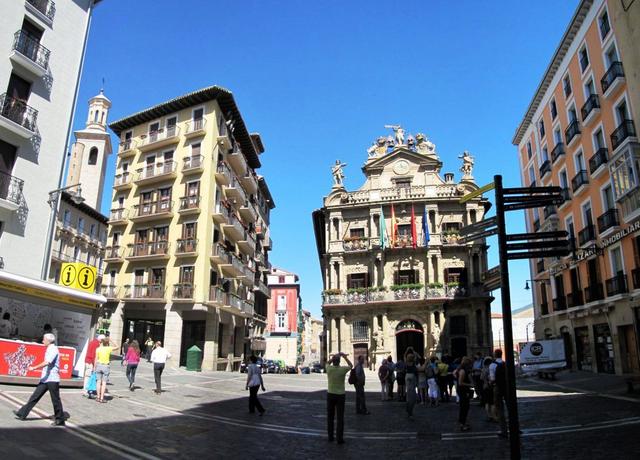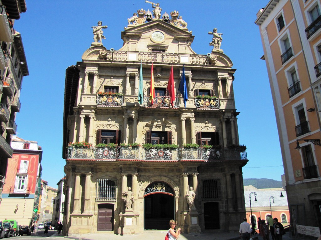 das Rathaus von Pamplona 18.Jh. mit seiner barocken verspielten Fassade