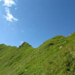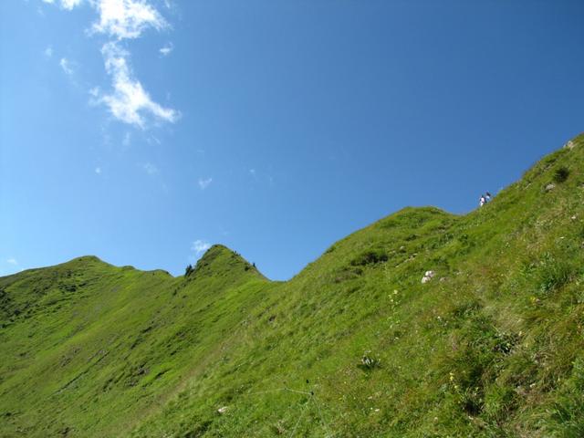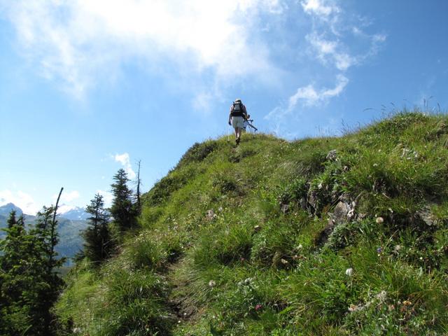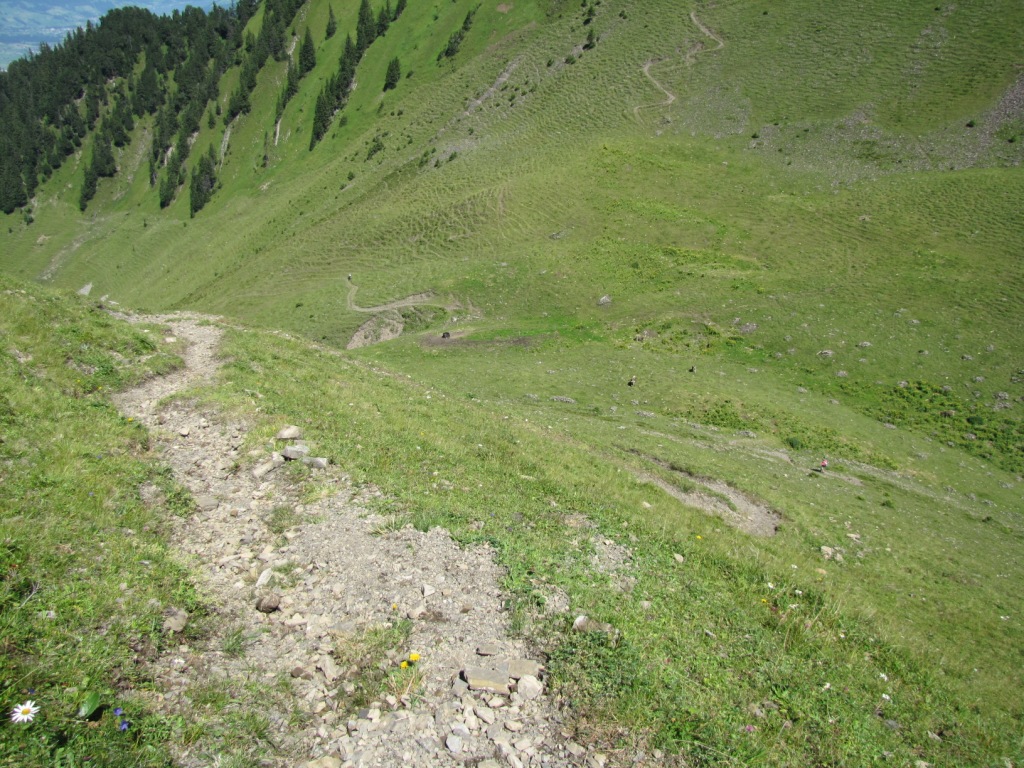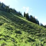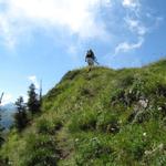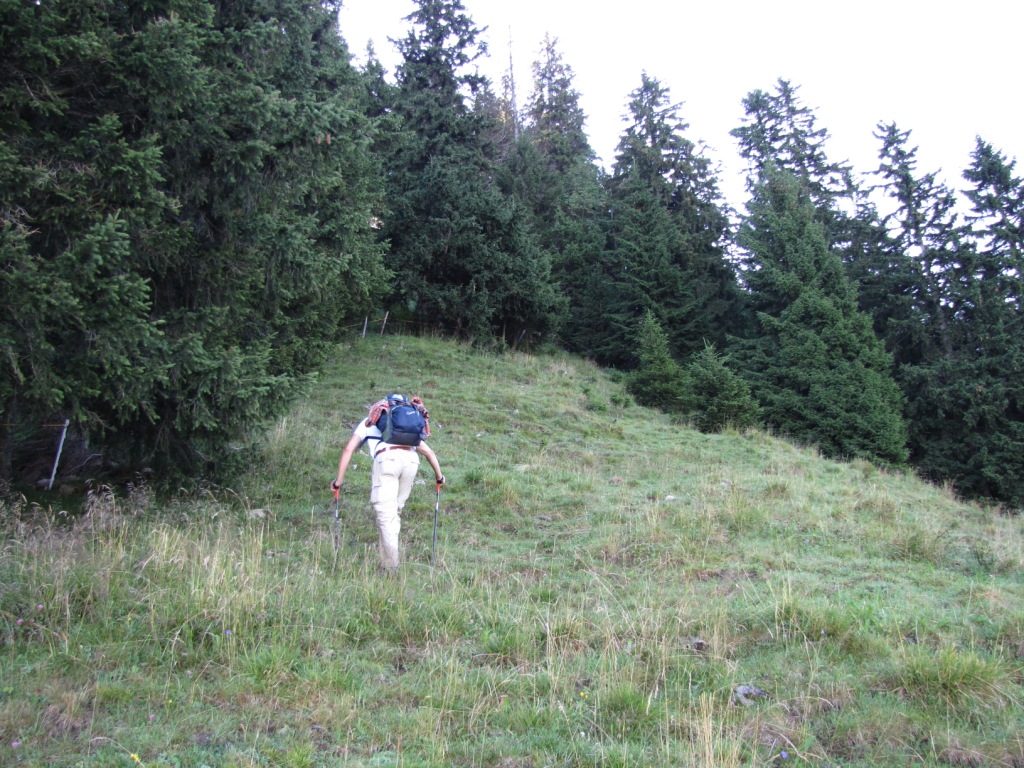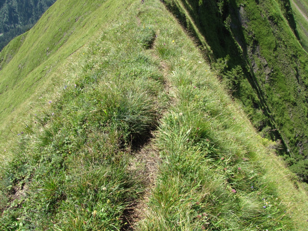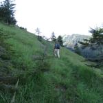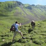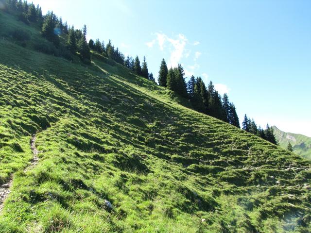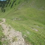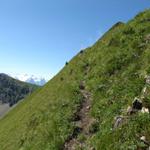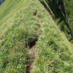 teilweise auf knappen Wegspuren, in steilen Grasflanken, führt der Pfad Richtung Wandelen Datum 17.09.2010