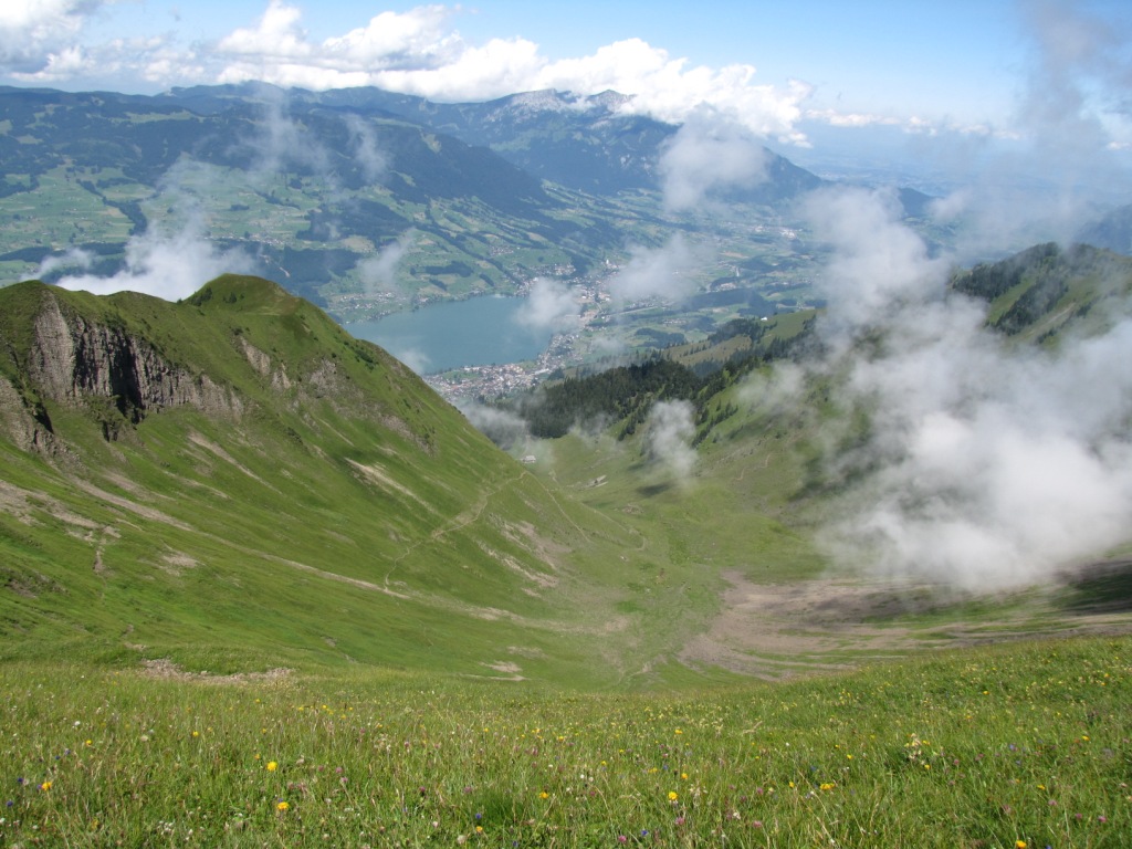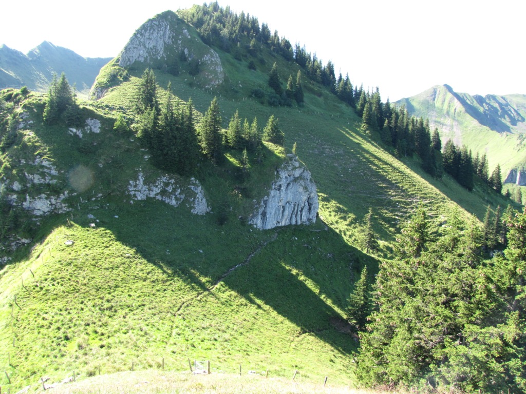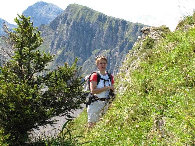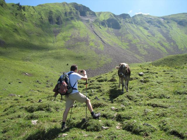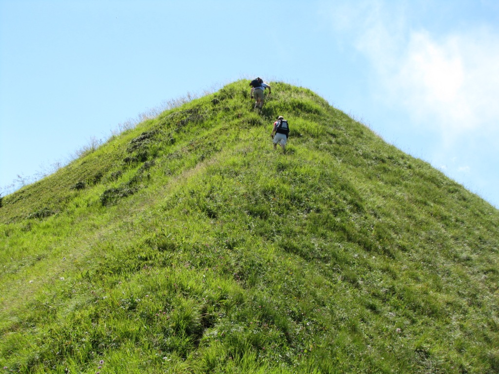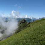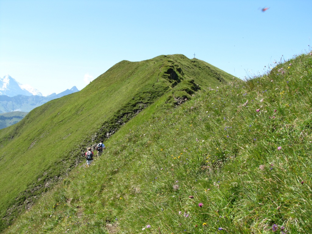teilweise auf knappen Wegspuren, in steilen Grasflanken, führt der Pfad Richtung Wandelen Datum 17.09.2010