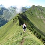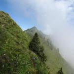 Blick nochmals zurück. Wie auf Messers schneide verläuft der Pfad am Grat entlang Datum 24.09.2010