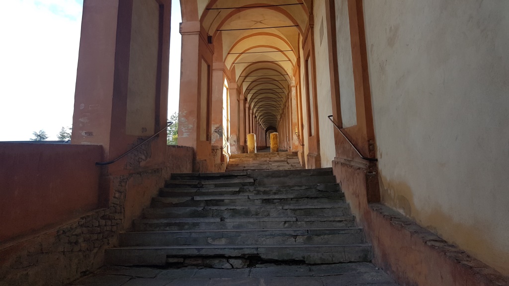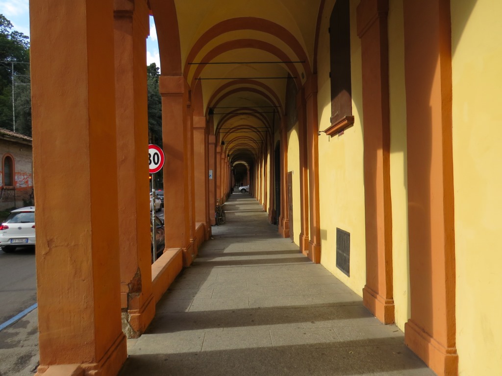 die Arkaden biegen nun links weg und führen aufwärts zum Santuario della Madonna di San Luca Datum 08.11.2020