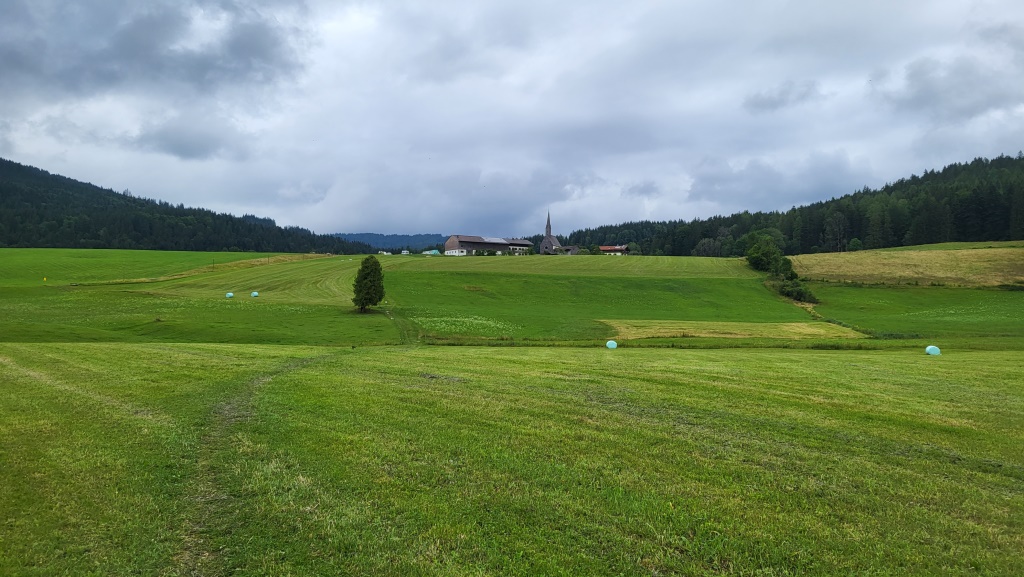über einen Wiesenweg erreichen wir den kleinen idyllisch gelegenen Weiler Einsiedl