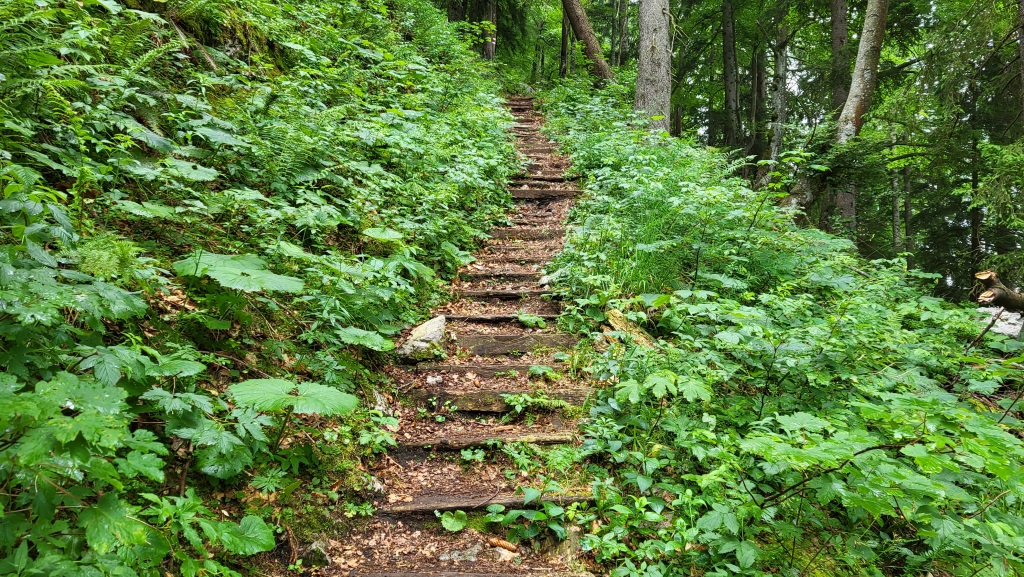 der Aufstieg bietet nur wenige Ausblicke ins Tal