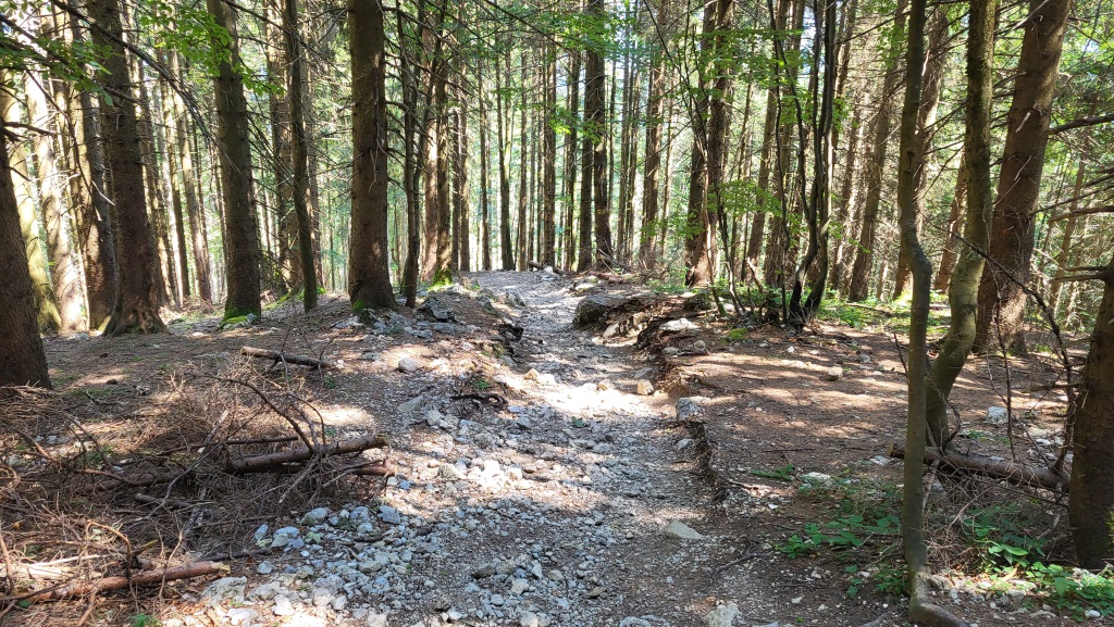 über eine breite Forststrasse geht es nun stetig aufwärts