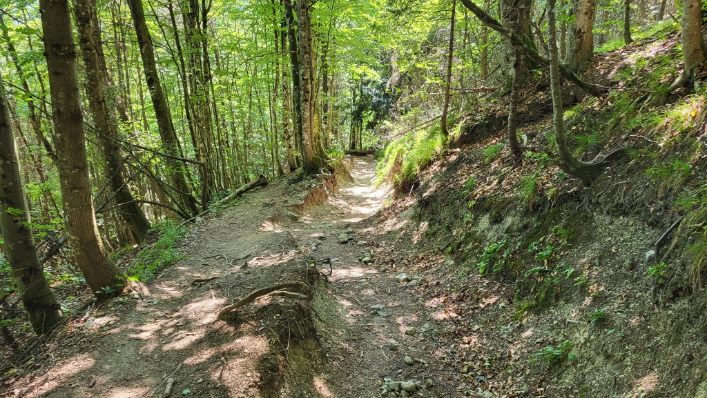 ...geht es vorwiegend durch den Wald, stetig abwärts