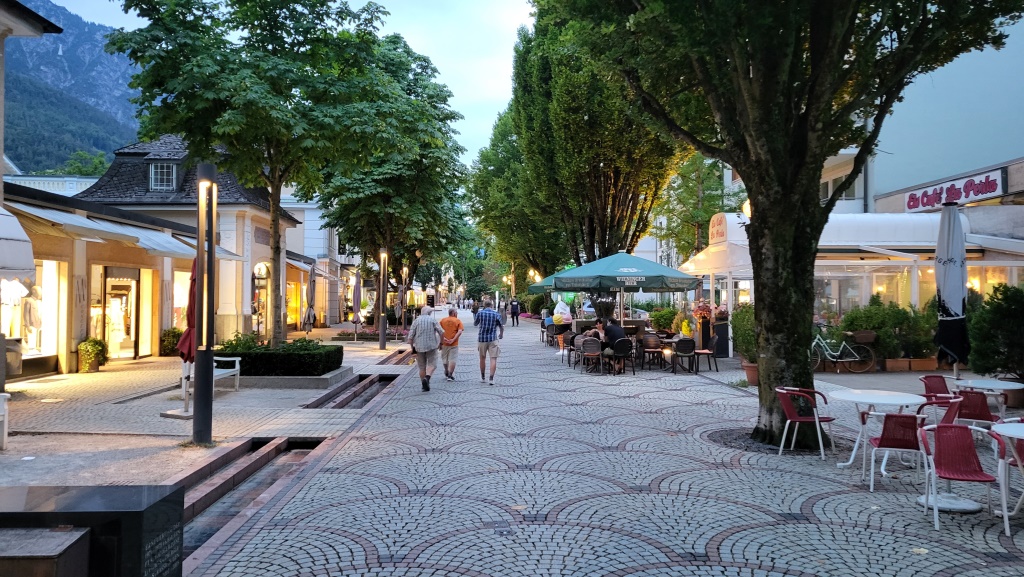wir erreichen die grosse Fussgängerzone im Zentrum der Kurstadt Bad Reichenhall