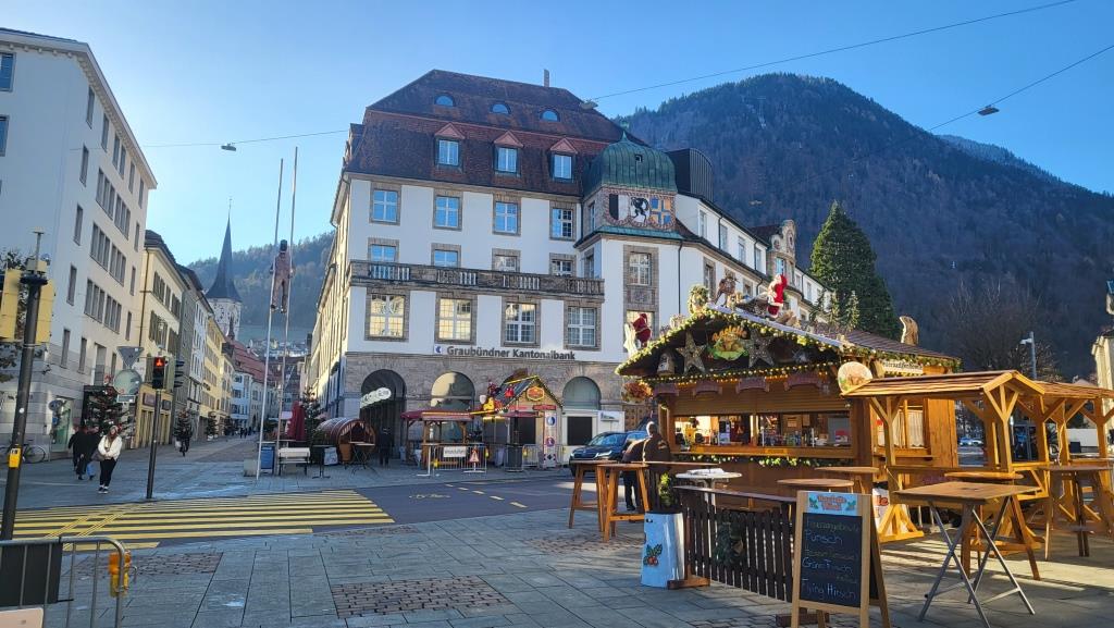 wir verlassen das Kaffee Klatsch und durchqueren die Altstadt von Chur