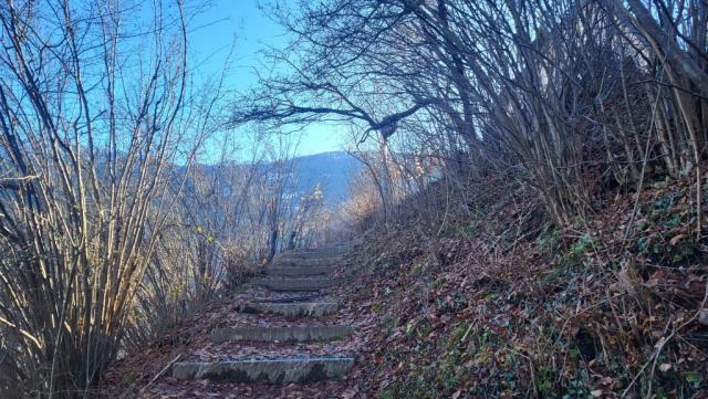 bei der Treppe zur Eisenbahnbrücke, sehen wir zum zweiten mal, die offizielle Wegmarkierung der Via Francisca