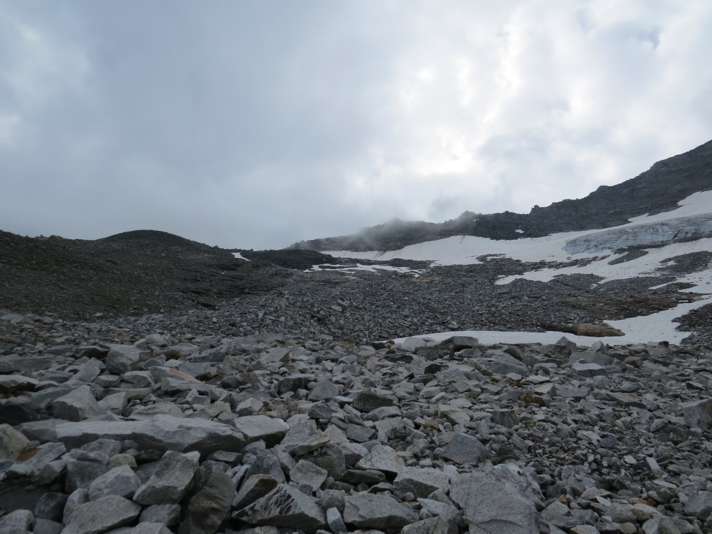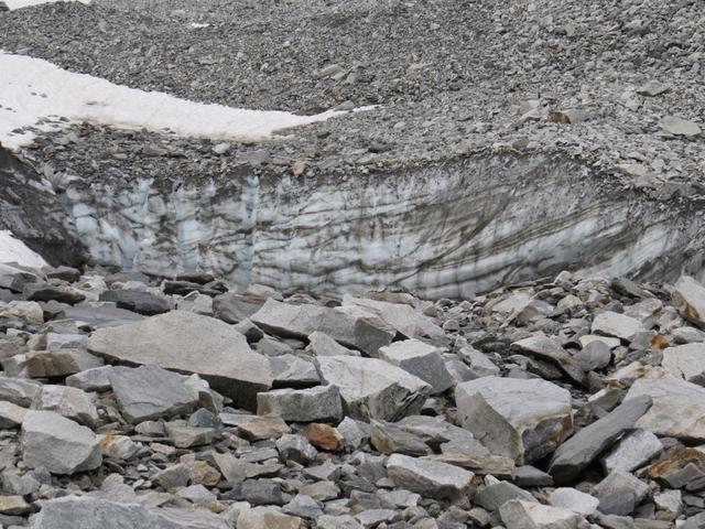 zum teil ist der Gletscher ersichtlich. Er ist mit einer meterdicken Geröllschicht überdeckt