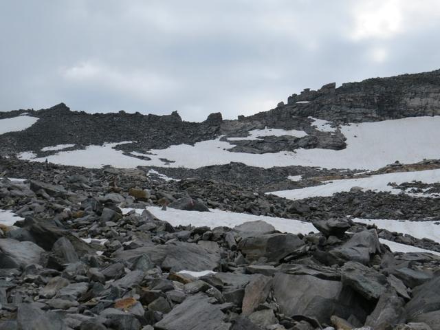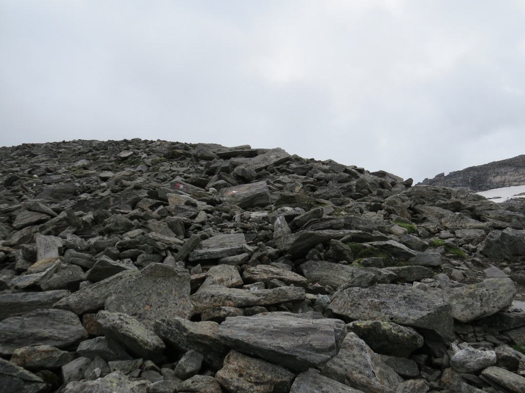 über Geröll führt uns der Weg zur Weggabelung bei Punkt 2676 m.ü.M.