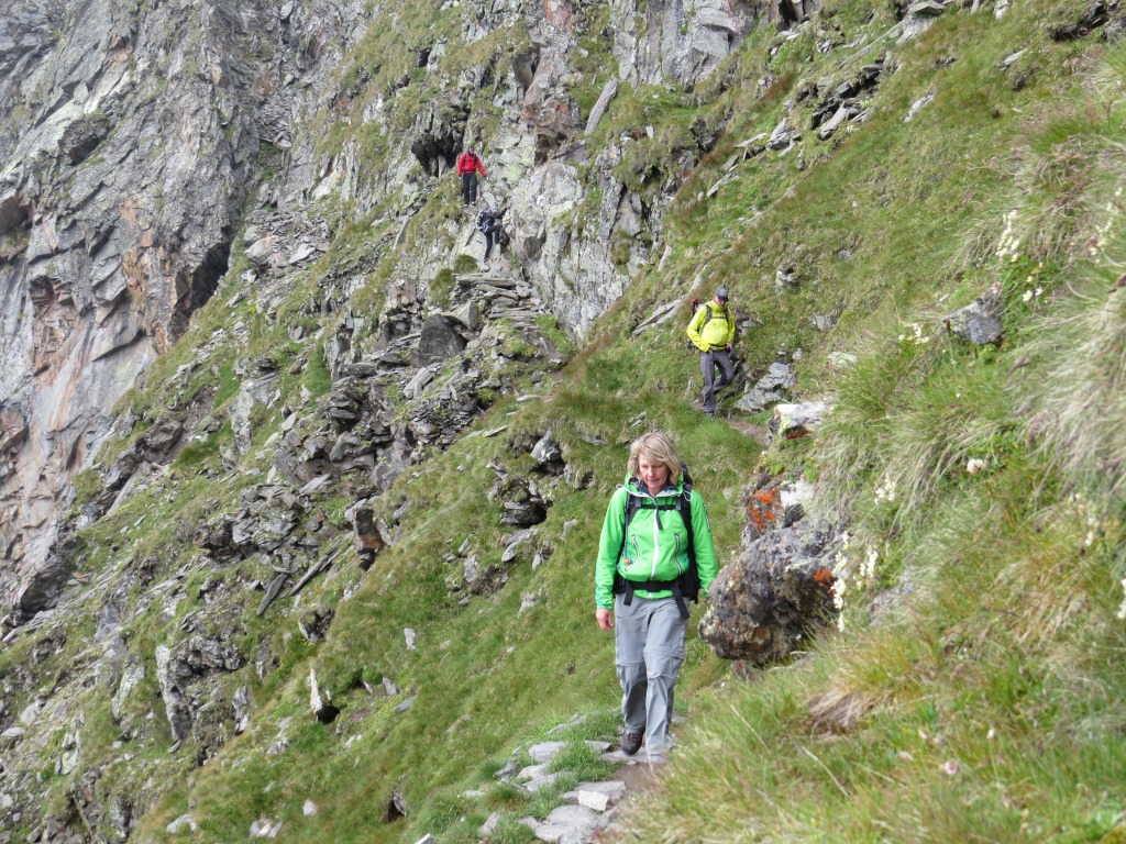 auf der Friesenbergscharte. Der Durchgang ist nur ca. 2m breit. Hier oben ist nur sehr begrenzt Platz zum Rasten vorhanden