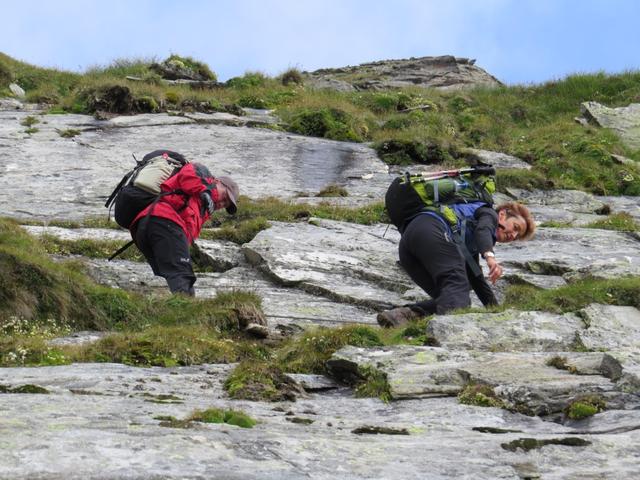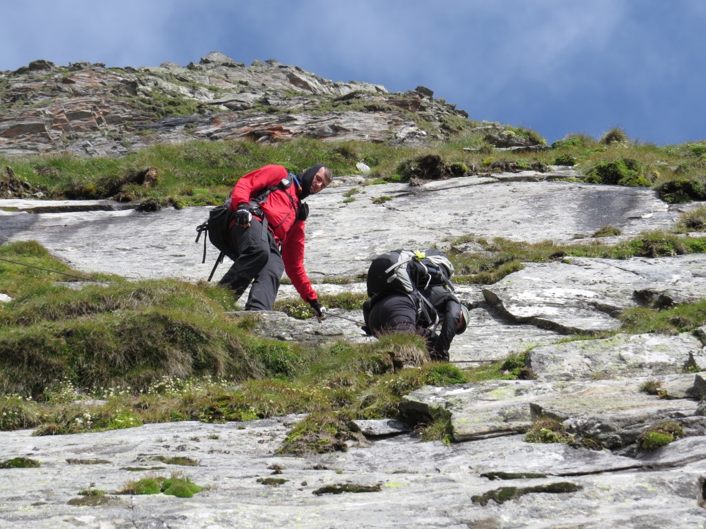 eine kurze Querung über plattigen Fels verlangt nochmals Konzentration