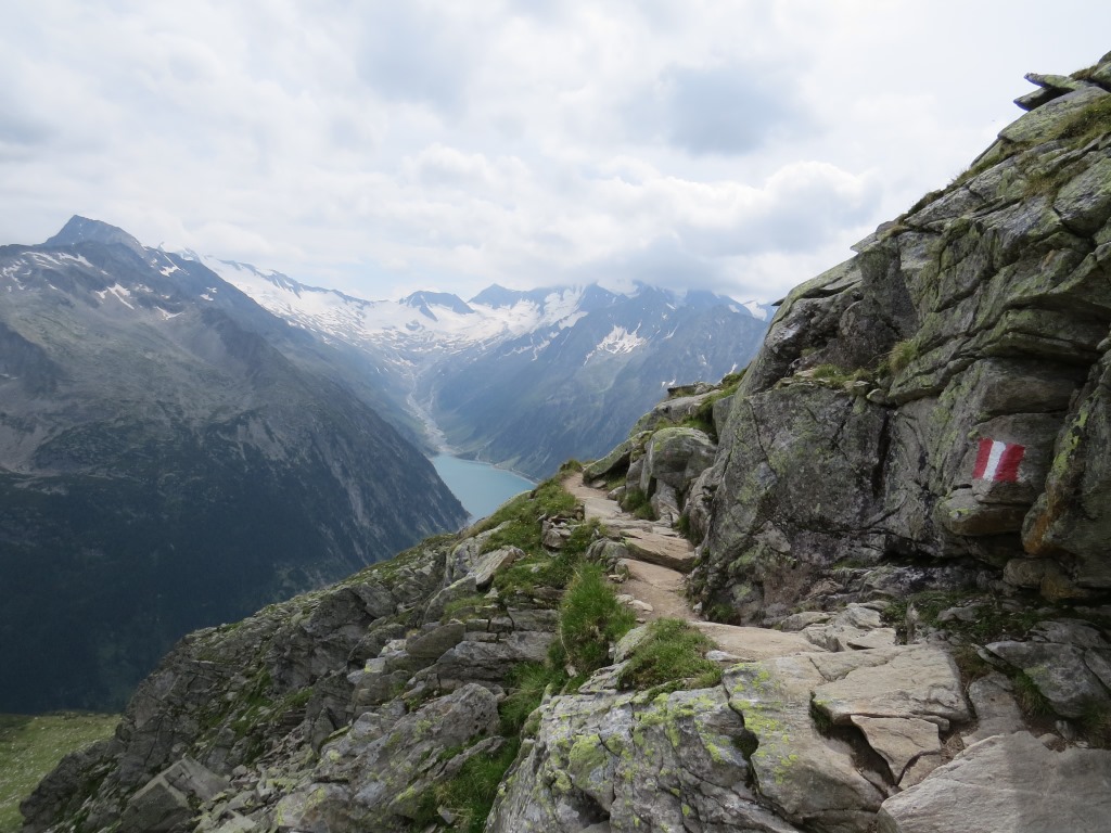 wir verlassen das Friesenberg Haus und wandern weiter zur Olpererhütte