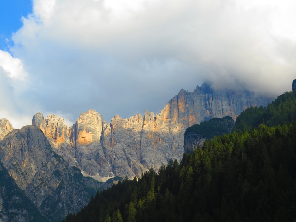 kurz vor Alleghe konnten wir zum ersten mal die Civetta bestaunen. Morgen werden wir dort oben sein
