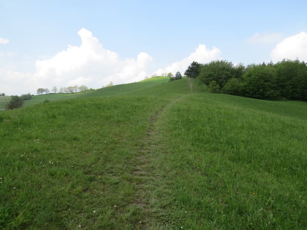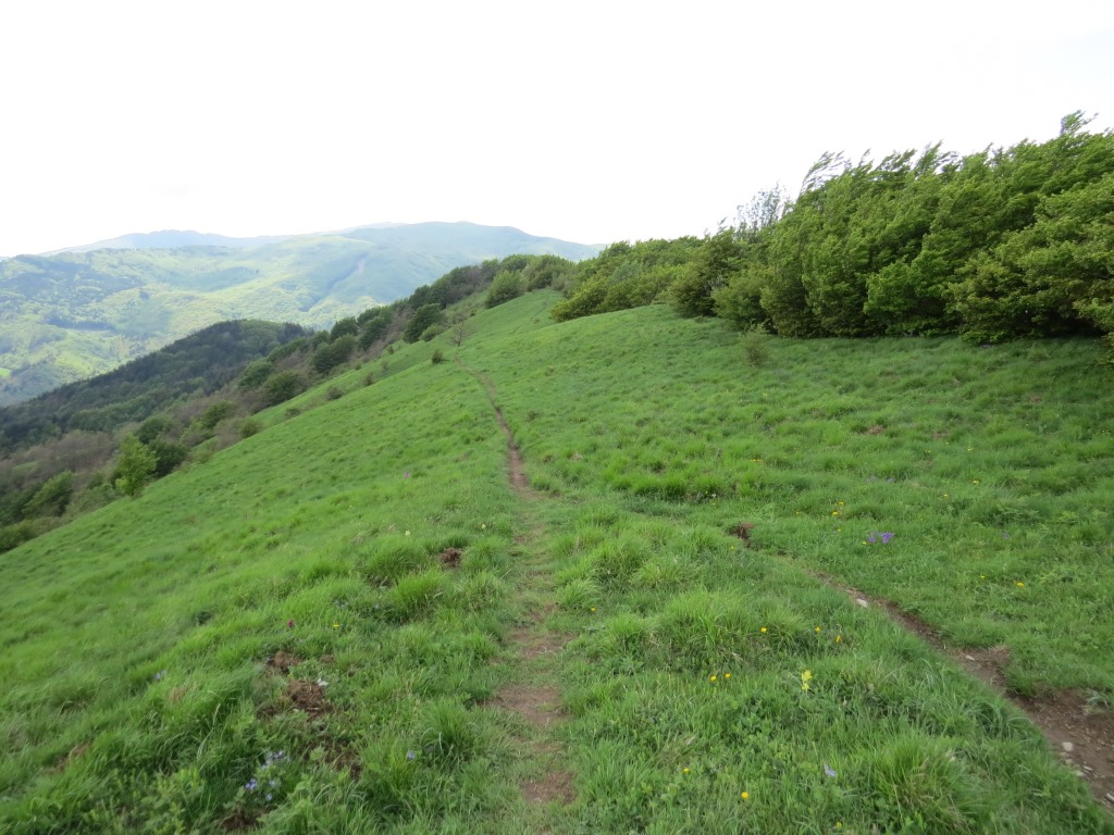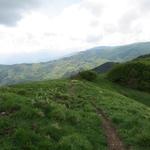 über den breiten grasigen Grat verlieren wir nun stetig an Höhe Datum 03.06.2018