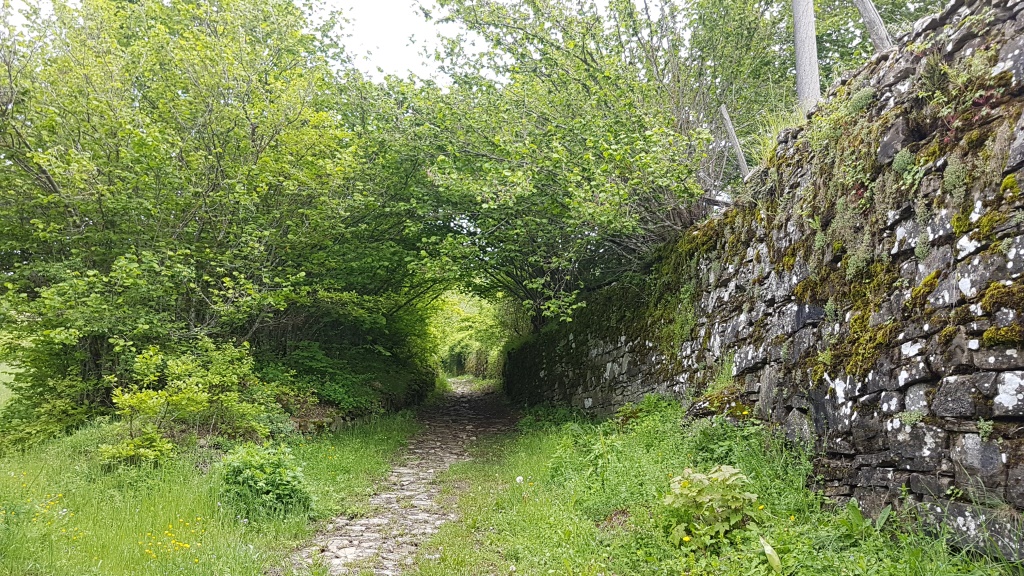 der schöne aber leider morastige Weg führt uns immer wieder an uralten Trockenmauern vorbei Datum 03.06.2018