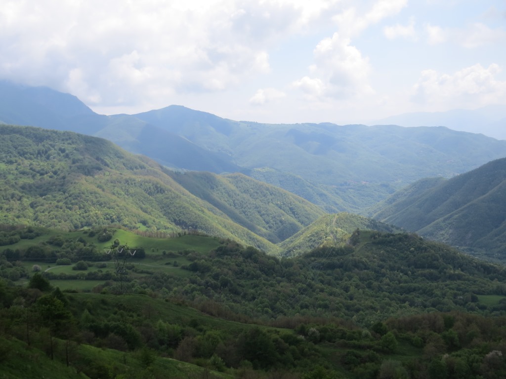 Blick hinunter ins Tal Richtung Pontremoli. Die nächste Etappe wird uns dort hinunter führen Datum 03.06.2018