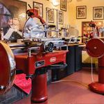 direkt neben den Tischen werden die diversen Salami und Schinken geschnitten Datum 03.06.2018